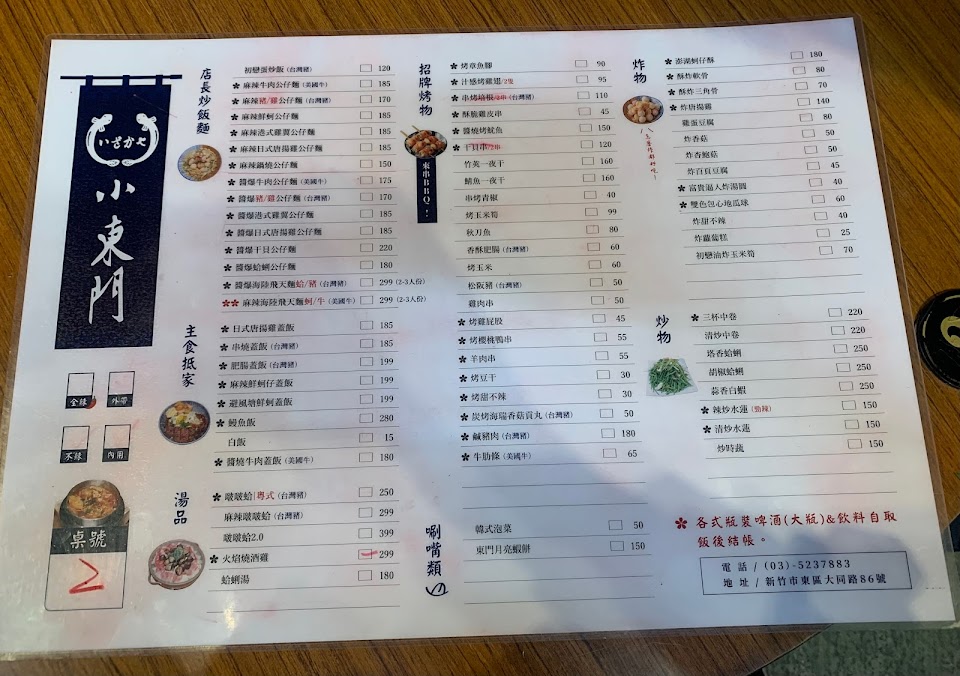 東門市場裡深藏著許多有特色的在地美食, 每家店都裝潢的很有特色及自己的風格, 不走近一點看的話完全不知道 賣的是什麼餐點,今天選擇了這家小東門來當作我們的第一攤 餐點份量足 點了麻辣鮮蚵蓋飯 及ㄧ些烤物 很好吃? 服務人員也很好? 只是冷氣不涼,用完餐都流了滿身汗,但不影響用用餐心情!如果有來新竹,會在回訪的店家
