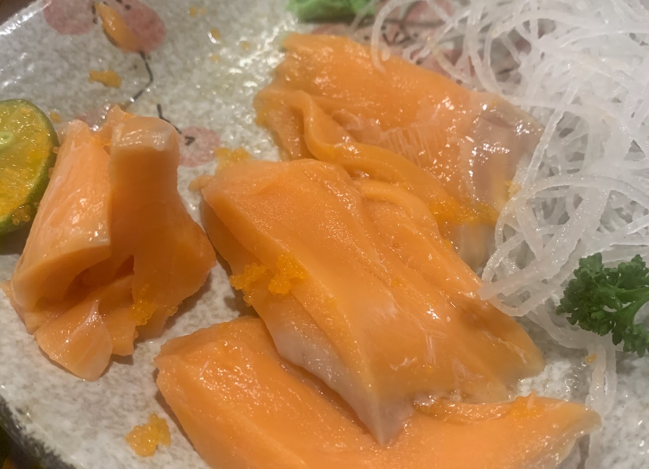 第一次鮭魚生魚片的照片拍起來像哈密瓜。