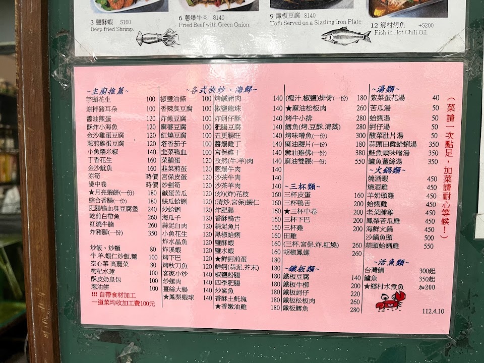 2024最新在地推薦餐廳的菜單_酒攤活海產的菜單、圖片