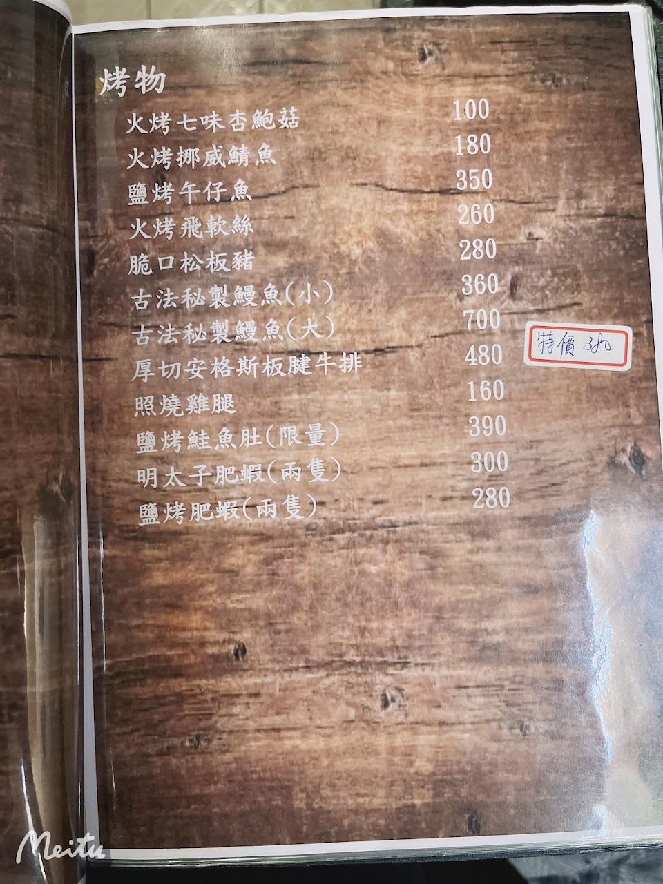 然後是烤海鮮的部分,烤午仔魚是用鹽焗的方式,皮不能吃,魚肉雖然帶有鹽焗的香氣跟油脂感,但也滿腥的,我覺得味道還不如築地鮮魚150元的正常烤魚,這道算200吧。