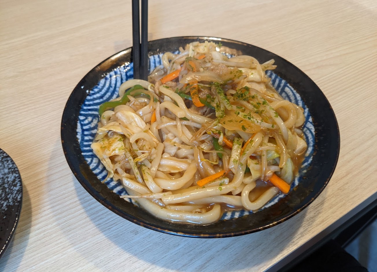 日式炒麵$120,吃起來跟台式炒麵沒什麼差別,而且裡面還加了青椒,就是台式的青椒肉絲炒麵,連上面撒的海苔粉和日式炒麵特有的醬料味道都被蓋掉了,和期待的日式炒麵完全不同… 玉子燒$50有四塊,味道是甜的……嗯我是鹹玉子燒派所以完全不喜歡 用餐環境還算放鬆,但餐點口味就有點讓人覺得CP值太低了,說實話是有點失望的