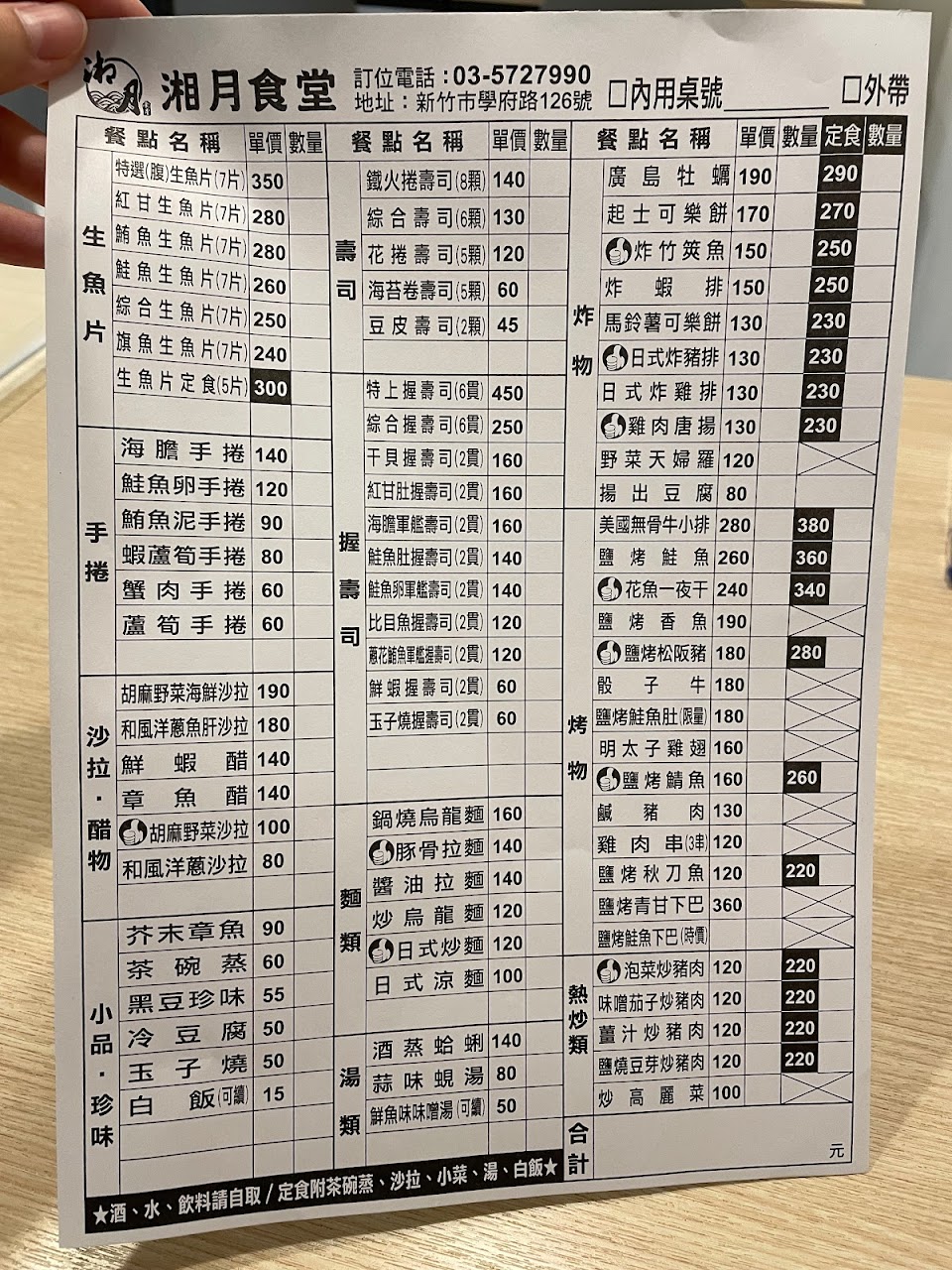 湘月食堂位於學府路上,鄰近新竹中學等學校,店門口可停機車。 有和外送平台合作,且可用Line Pay和街口支付。 餐點種類多元,炸物、烤物和熱炒類可搭配定食,定食內用可以續飯和湯。 定食的味噌湯和茶碗蒸都有料,小菜是醃漬菜和醬燒蘿蔔,都是好吃的。沙拉搭配胡麻醬,醬料偏多。 這次點炸竹筴魚(3隻)和廣島牡蠣(5個),都有搭配定食,炸物都炸得很酥脆,底部雖然直接和盤子接觸,但不會軟掉或太油,由此可見廚師的功力。 另外有點一個蘆筍手捲,不同於常見手捲使用苜蓿芽,這間店的手捲使用的蔬菜是萵苣。 搭配定食的價位和山威食堂差不多,相較之下個人比較喜歡這間店。 / 2023年1月,再訪更新:這次吃到的定食小菜都是醃漬物,和初訪差很多,覺得不太行,所以扣一顆星。日式炒麵還不錯,可以吃吃看。