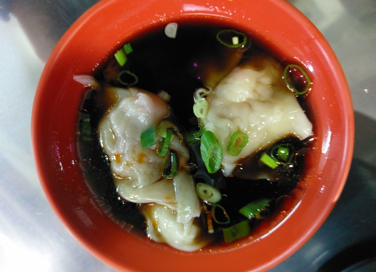 餛飩很特別,比起一般蝦仁餛飩大,調味是用港式甜醬油