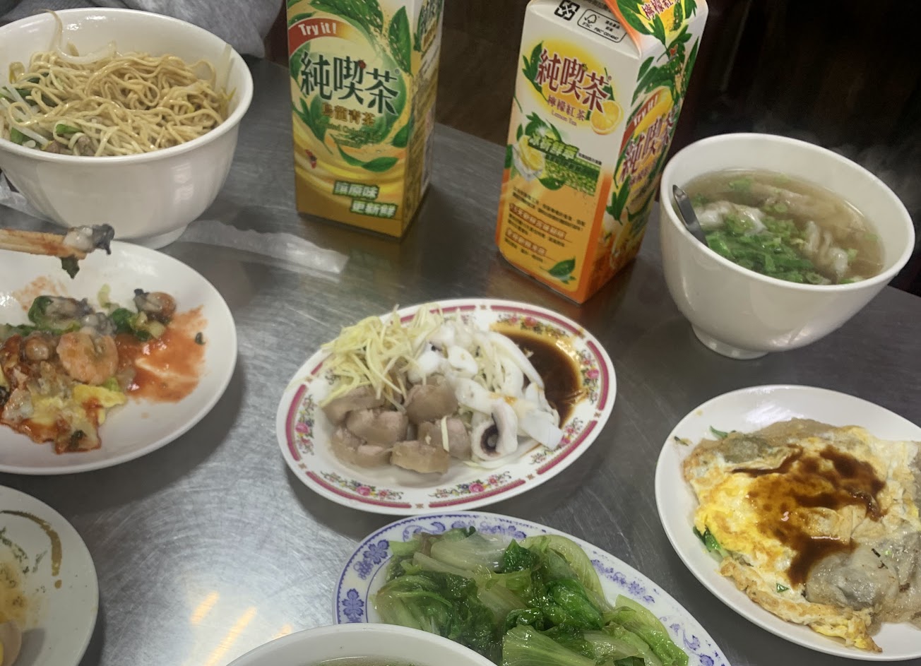 蚵仔煎的水準中上,乾意麵有點太水,麵條有嚼勁,但味道偏淡,餛飩湯有點甜(?) 有點吃不習慣!下次來只會點蚵仔煎