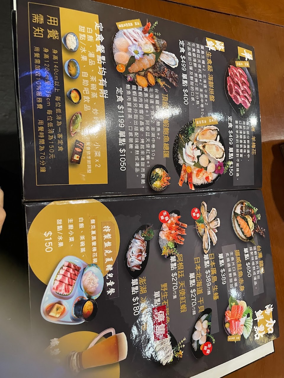 299的套餐很超值 白飯、炒高麗菜、湯,都吃到飽 服務員很用心 隨時都在看有沒有需要加補白飯或菜 海鮮拼盤$400很推薦點 生蠔有兩顆,很大很新鮮!擠檸檬好好吃!! 但鮭魚生魚片$300就沒那麼推薦了,只有8片且油花不多,吃完感到空虛