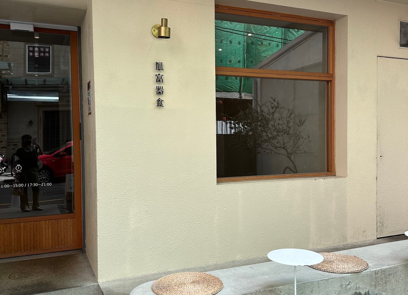 皿富器食位在新竹巨城對面的巷子內 文青簡約的裝潢,店內氛圍好也好拍照