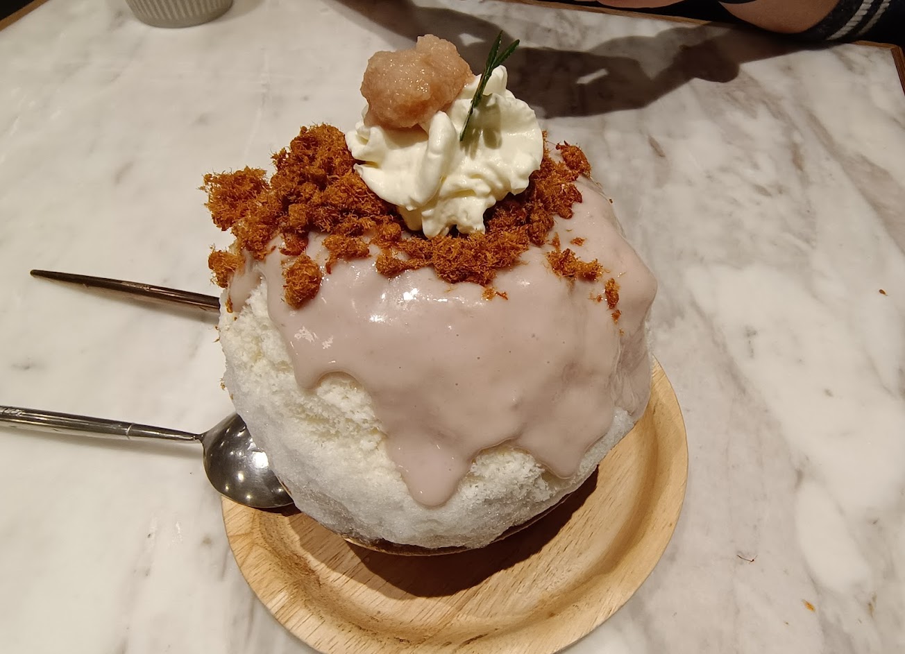 抹茶刨冰口感細緻,裡面還有紅豆(紫米)夾層,也不會太甜,總體來說甜點表現較主食好,加回一顆星。