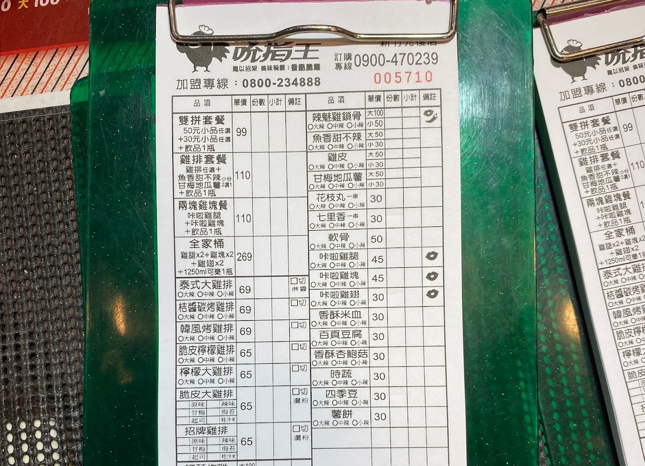 我跟馬子凌晨12點突然想吃炸雞,以前常吃的美式炸雞店都休息了只剩吮指王有開,抱著一試的心情點了一桶小辣的全家餐,口感的話跟其他美式炸雞差不多,現炸的吃起來都皮脆多汁,口味的話我覺得辣的比其他家好吃,表皮也不會過鹹,這家我給五分,列為以後還會光顧的店