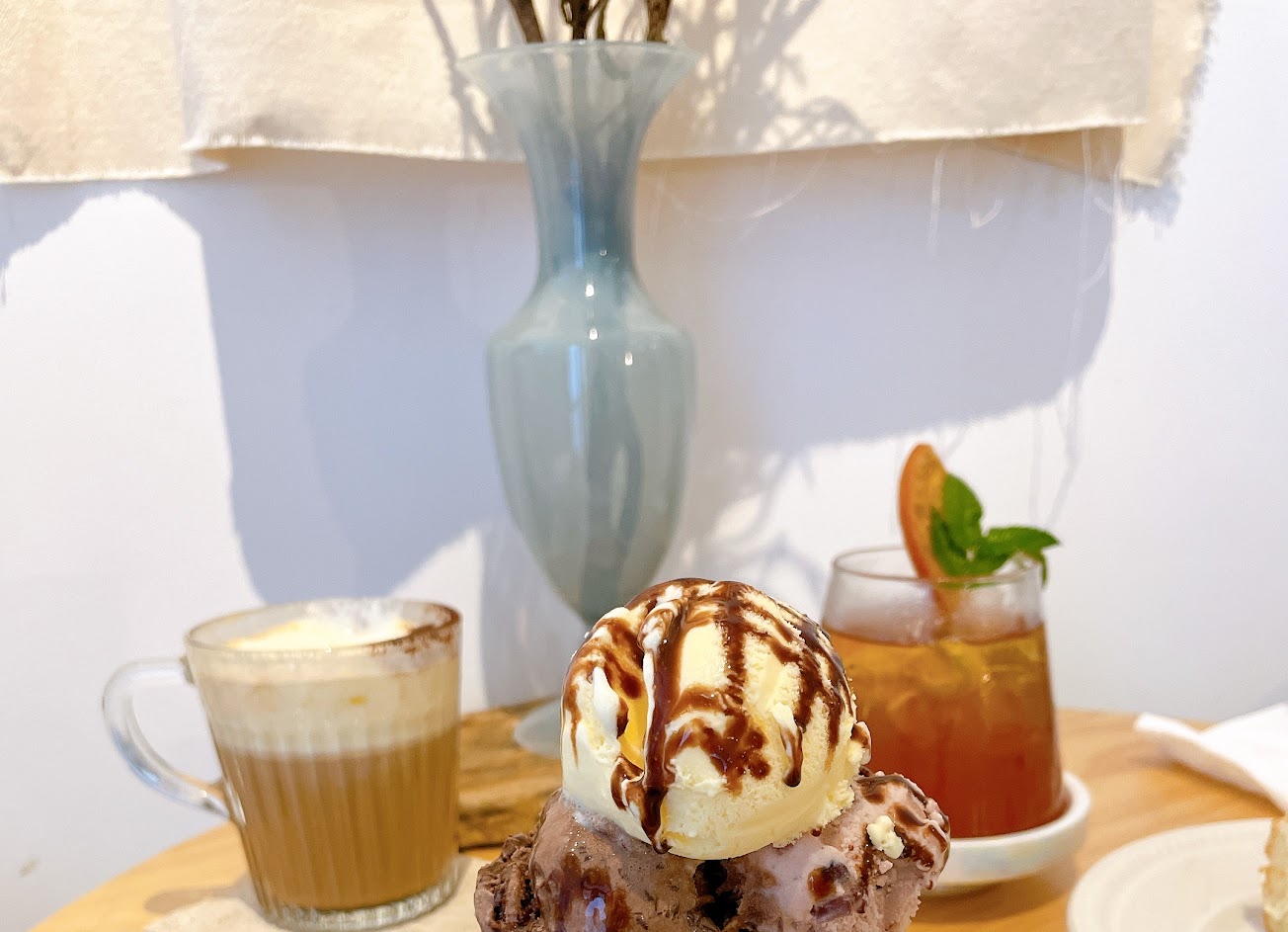老宅透天改裝的咖啡廳,店內空曠採光非常好,全店是白色油漆,保有一些壁櫃都是以前老宅的原貌,隨便一個角落都很好拍採光夠。
