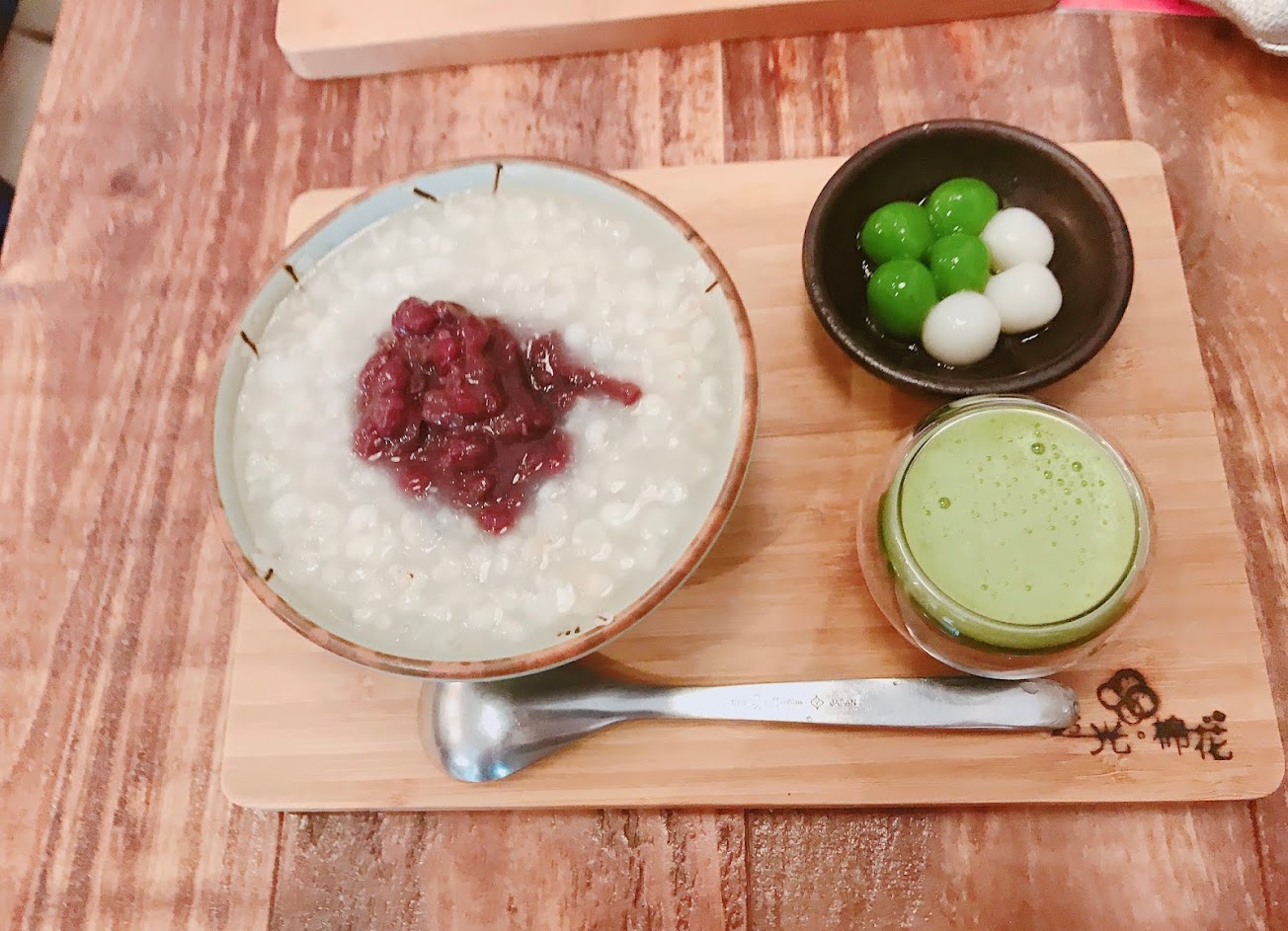 ✦「白水映紅花,綠草連綿天」,超可以吃 ,白薏仁搭配紅豆配上抹茶湯圓,清爽不膩,在心中透出微微曙光的幸福時刻