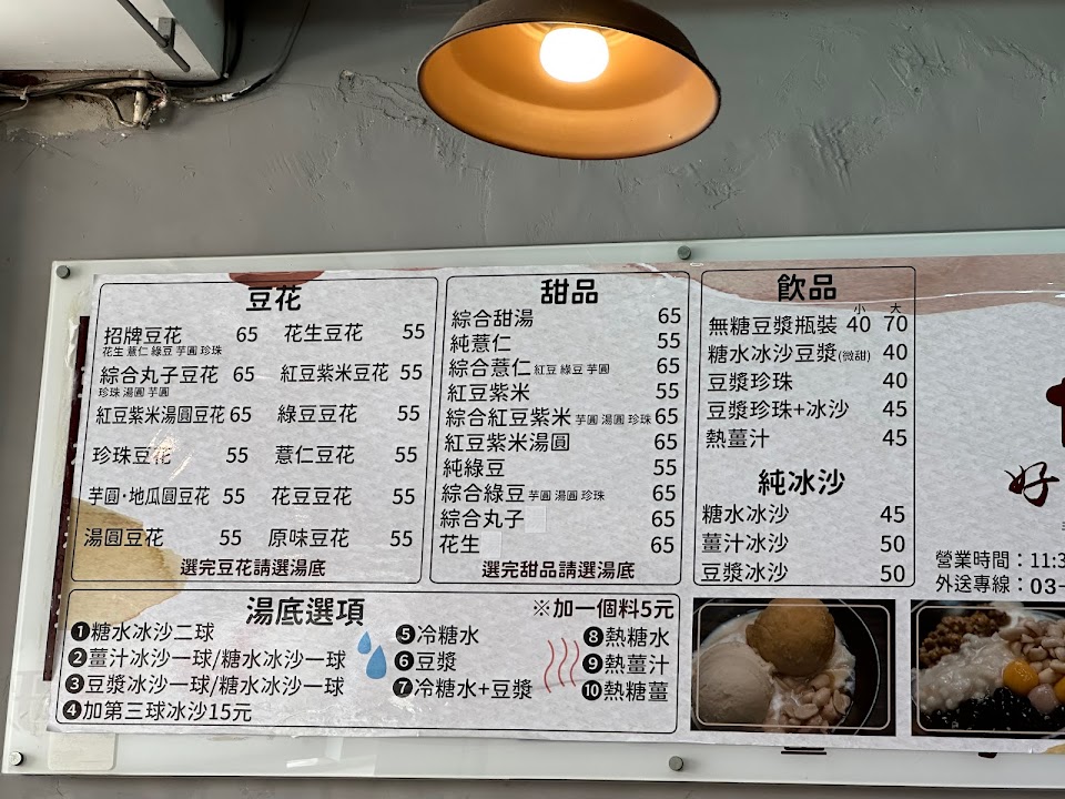 $40一碗,冰的豆花會有兩顆冰沙,可以選薑汁跟糖水!