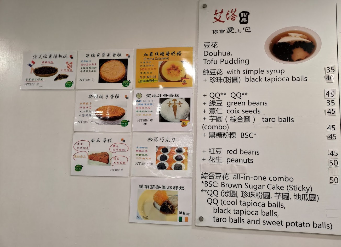 這天散步時終於想起艾塔,到了之後看到琳瑯滿目的菜單,可能會讓選擇障礙的人有點頭疼,但我可不是,很直覺的選了綜合豆花。