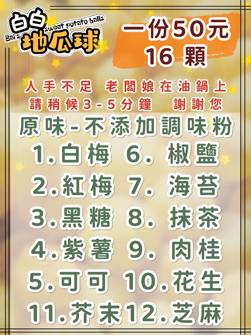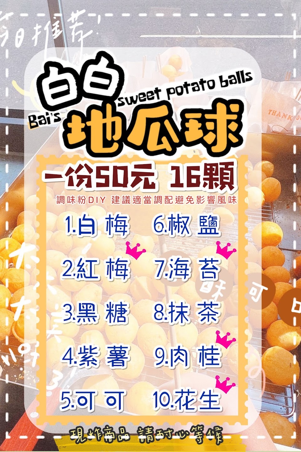2024最新在地推薦餐廳的菜單_白白地瓜球(公休日 4/4、4/10、4/16/、4/24、4/30)的菜單、圖片