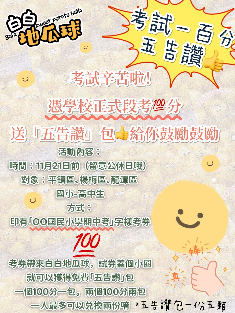 白白地瓜球(公休日 4/4、4/10、4/16/、4/24、4/30)