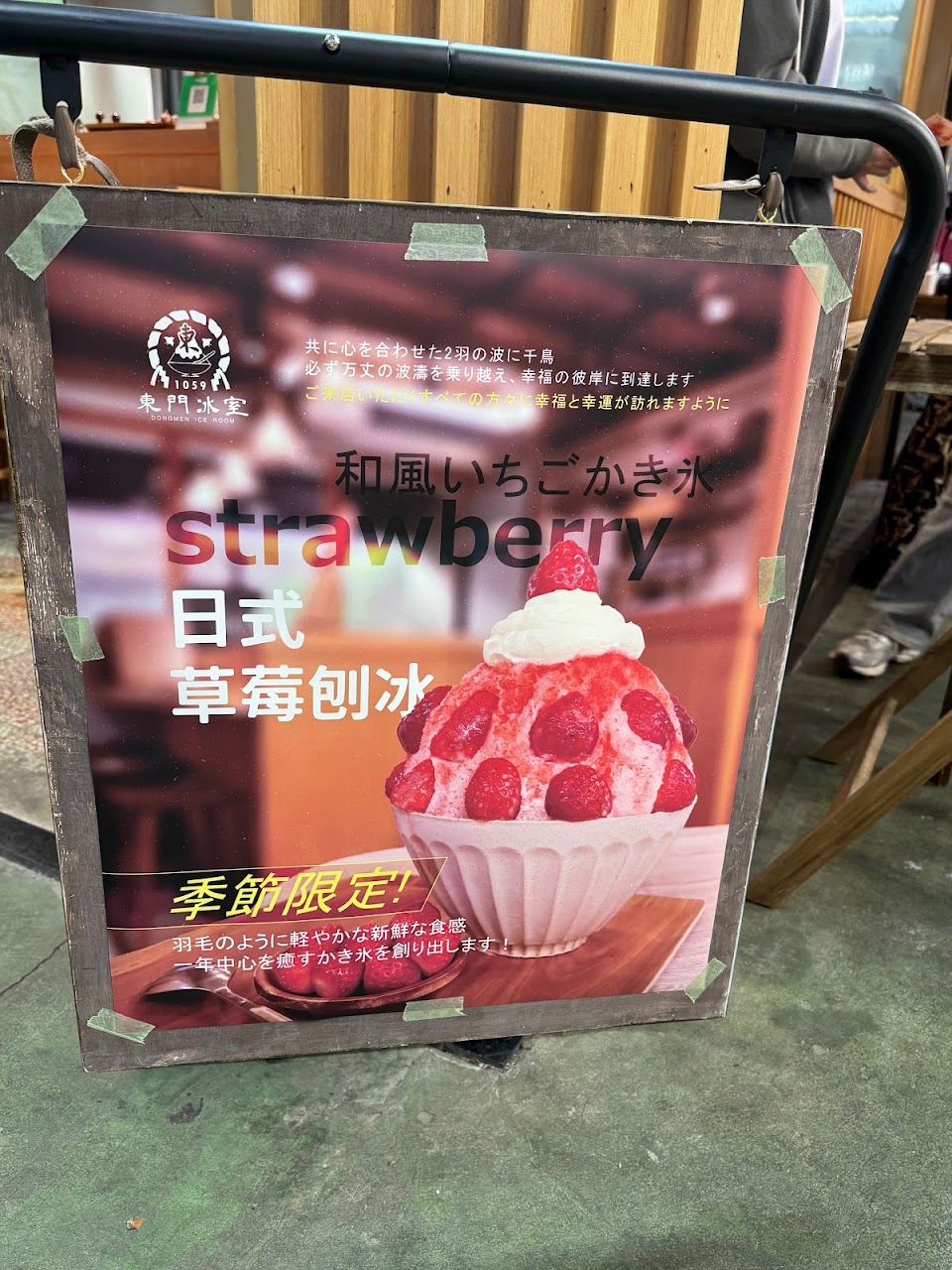 上面的淋醬奶味很重和草莓一起很搭,冰層裡面也有奶油不會吃到裡面都是清冰,重點是老闆人很好~吃完還給我們一杯熱茶,推一個