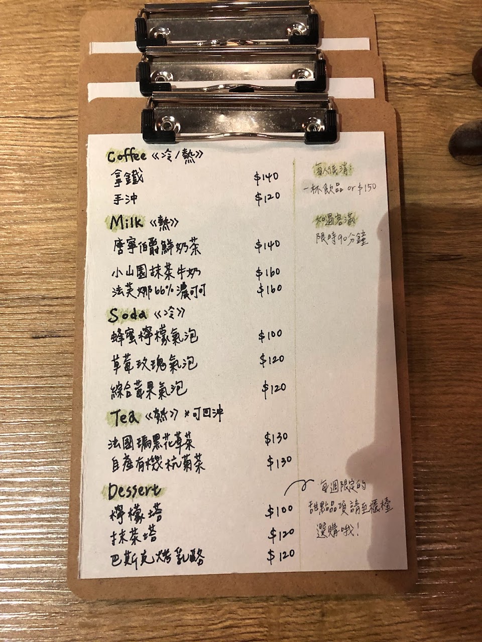 手沖$120 抹茶塔$120 莓果氣泡$忘了 柚香金萱戚風$150 搬到新址第一次來,甜點一樣好吃 抹茶塔濃濃的茶味,塔皮也酥酥的不會太軟,友人吃的戚風有淡淡的花香味(但也有可能我們木舌頭?),但是絕對是好吃的那種 會回訪N次ㄉ