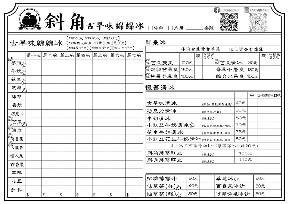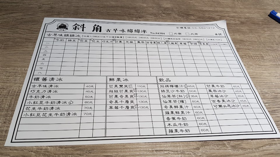 2024最新在地推薦餐廳的菜單_斜角古早味綿綿冰的菜單、圖片