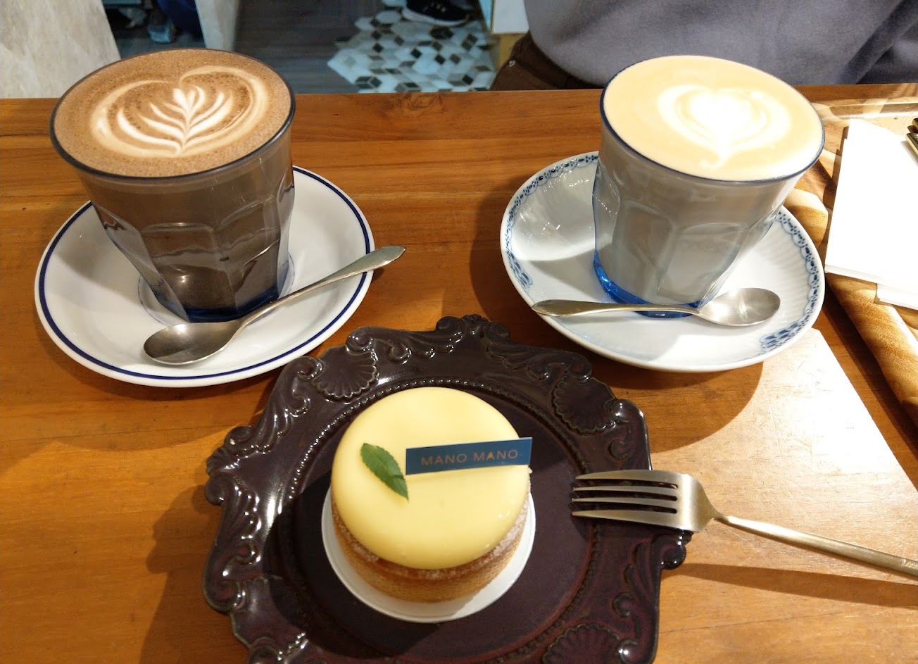 一走進店裡就聞到香香甜甜的味道,座位不多,開放式廚房可清楚看到甜點師製作甜點,與斜對面的布蕾咖啡是姐妹店,也可在布蕾用餐來Mano Mano選甜點,店員會送過去。