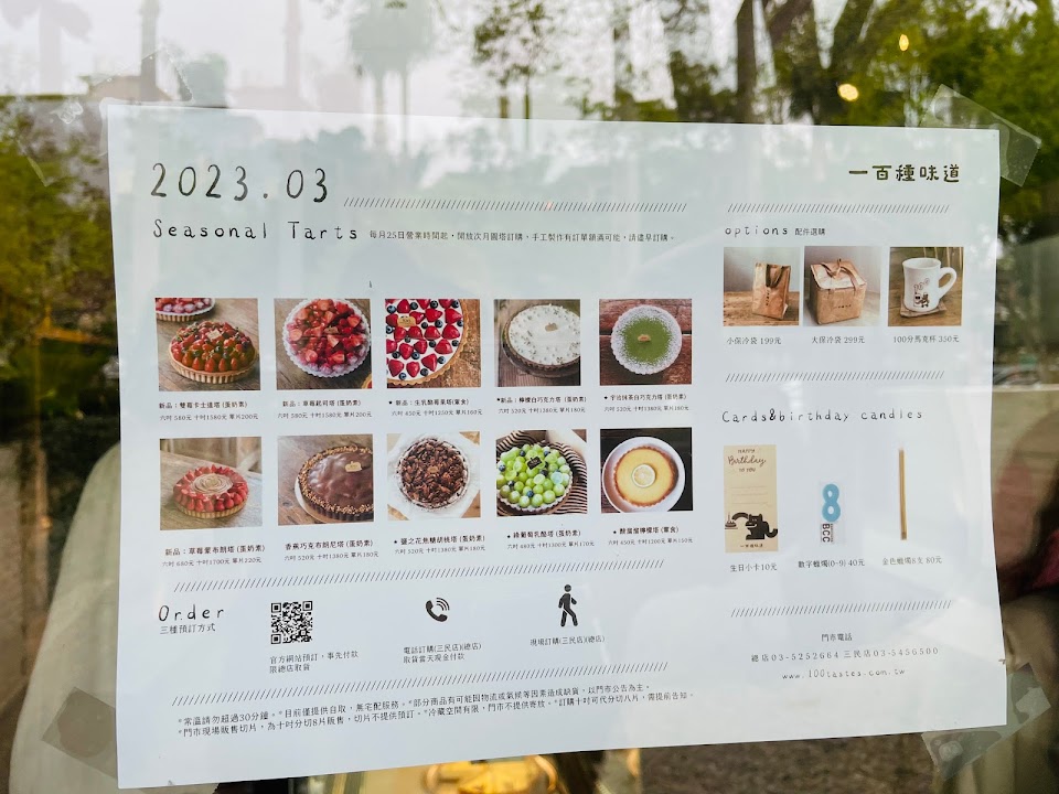 一百種味道的二店 在巨城旁邊的老宅,外頭小庭院好拍! 跟一店一樣,低消是一人一杯飲料(我們點洋甘菊蜂蜜茶、烏龍鮮奶茶),飲料表現都不錯 當天我們點了一種鹹派跟兩種甜點,分別是: ?️菠菜羊奶鹹派 ?️生乳酪芒果塔 ?️酸溜溜檸檬塔 可惜的是檸檬塔一點都不酸,是偏甜的?生乳酪芒果塔中規中矩 表現最好的是菠菜羊奶鹹派,旁邊有附上一些解膩的沙拉 我們是星期五下午去的,在二樓的座位用餐,不誇張,大家用盡全力在聊天,音量不小,有點像菜市場,如果想找一個空間做自己的事,這裡可能不會是好選擇