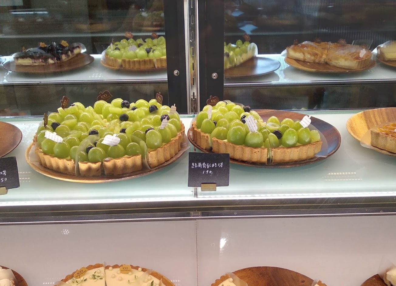在購買的過程中客人絡繹不絕,外面也很多人在拍照,購買是選櫥窗內有的水果塔。 本次是跟店家預定2個葡萄水果塔,預定只能選擇6寸或之上的尺寸,不能預定切片,買回家中分享給家人好評,十分好吃的甜點。 外面的道路路邊停車格也蠻好找到空位的,對開車購買的人來說很方便。
