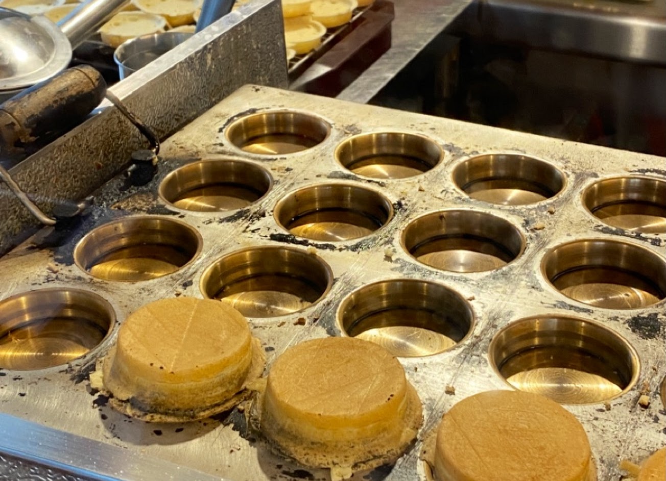 預約4:00領取,但因為臨時有事,趕緊跟店家聯絡會晚點過去,到場後老闆很貼心的把做好的紅豆餅再放回鐵模預熱,同時說明其中一顆因為有奶油怕久了會融化影響口感,現場在製作。(大感動