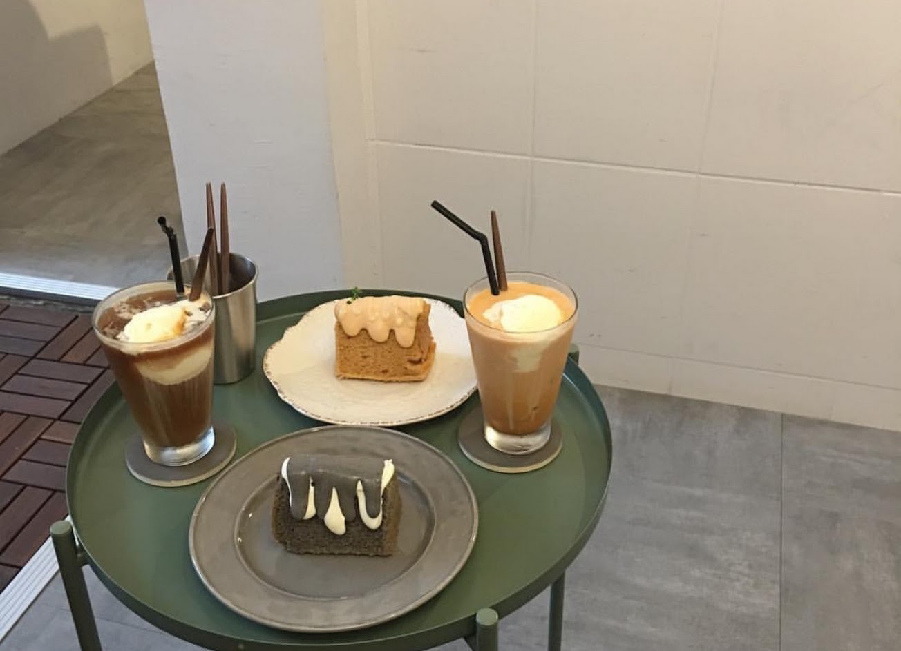 在小巷弄裡很低調的一家店, 前面區塊是賣服飾,後面的區塊則是咖啡用餐區, 蛋糕部份點了很多人推薦的泰奶戚風、名字超長的鹽焦糖脆脆巧克力戚風, 飲料則是點了黑糖維也納咖啡和柚香氣泡咖啡。