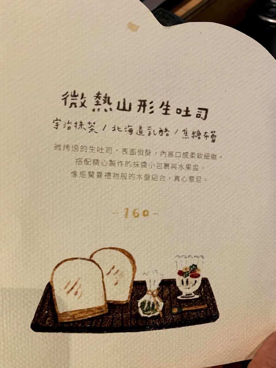 服務親切,入內需脫鞋穿襪子。 用餐環境寧靜,有限2小時。 季節水果三明治,口感輕柔。 招牌奶酥厚片,有甜度,奶酥烤面帶焦脆。 大人布丁上有一球清爽冰淇淋,層次進階。