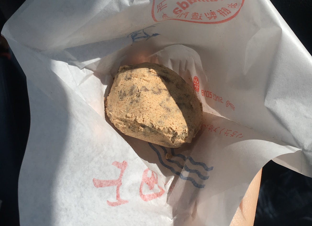 外層裹黃豆粉,是日式口感,不是Q彈那種,東西是好吃,唯一可惜的是當天有位包裝的先生感覺好像鼻子在過敏,直接用手揉了鼻子繼續包裝卻沒有戴口罩,10/17那天