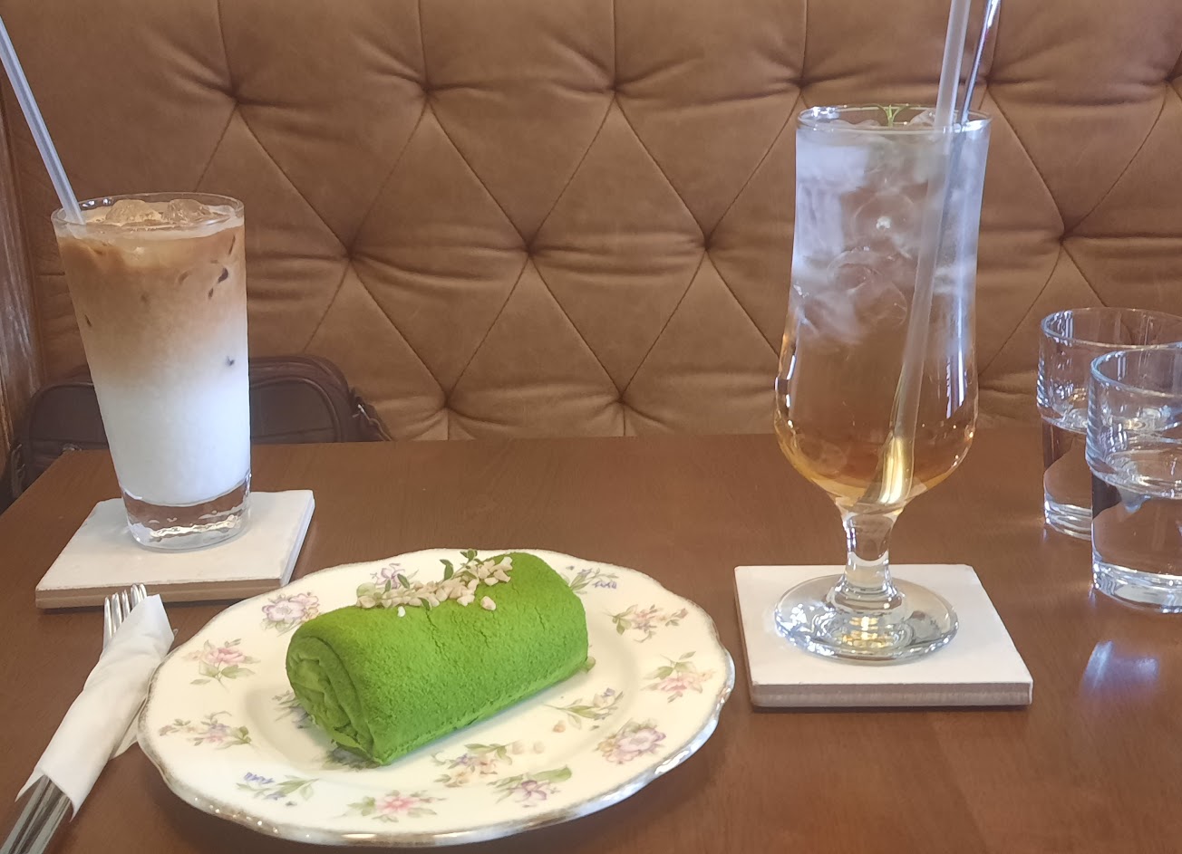 擠擠燒非常好吃,點了燻雞加了起司,相當合。朋友點了抹茶蛋糕捲,抹茶也非常濃郁