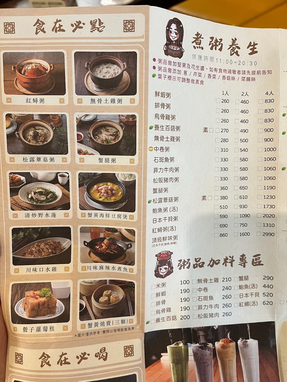 多樣粥品港式點心可選擇,特色冷飲茶品應有盡有