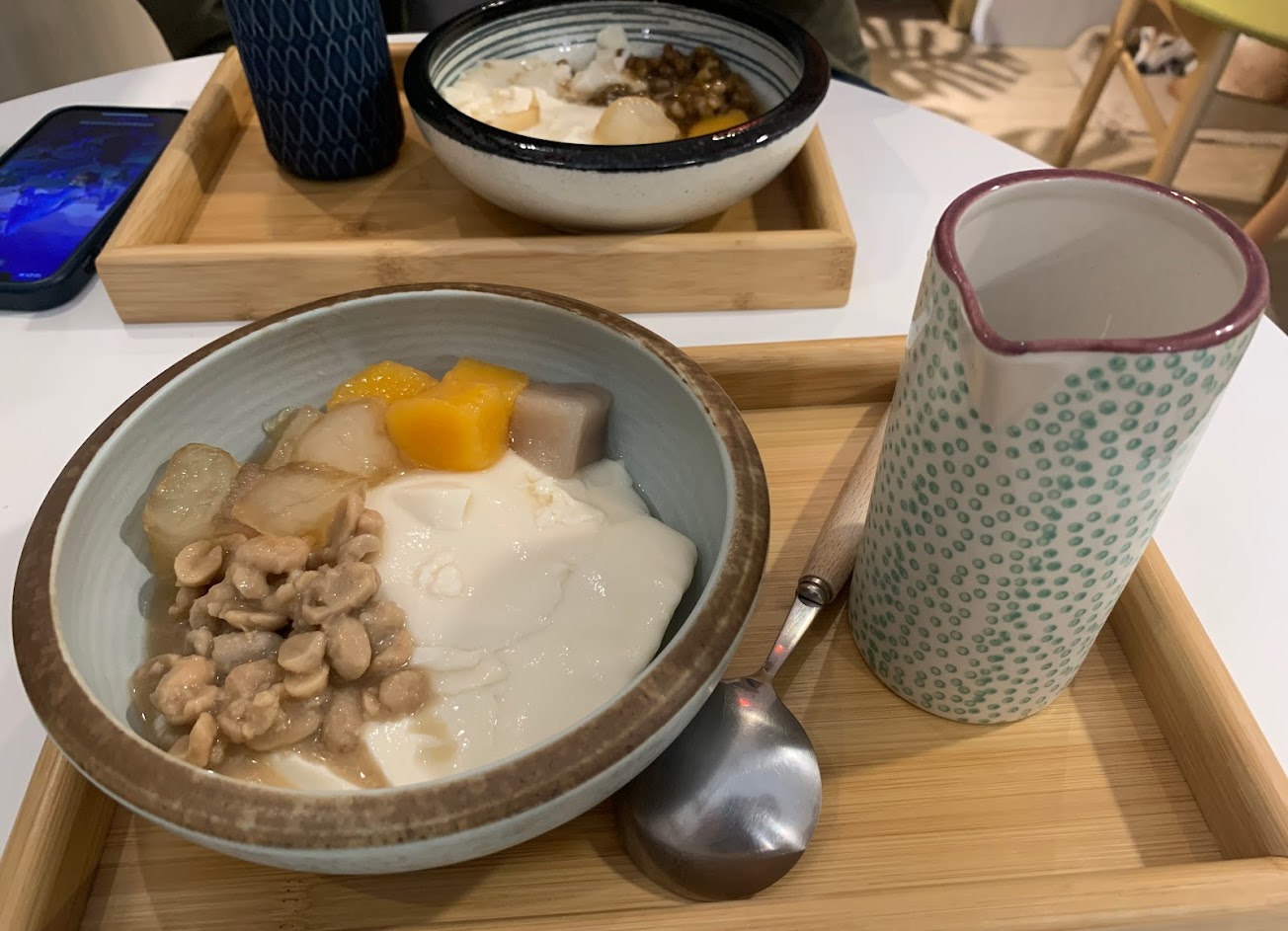 選了擂茶當底,第一次這樣搭配豆花,蠻喜歡的,整體不會太甜。