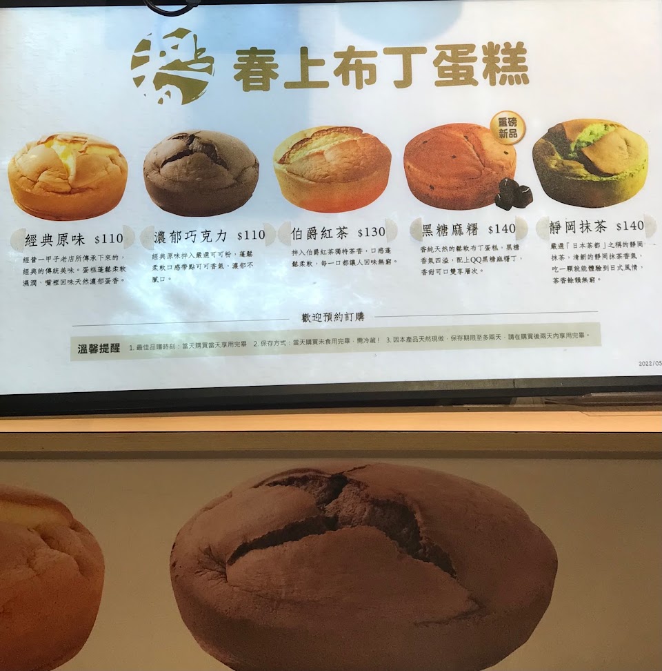 春上布丁位於巨城的四樓,靠近華納威秀附近的手扶梯,其蛋糕有點像是古早味的蛋糕,但也有不少口味可選擇,巧克力,紅茶,及原味蛋糕,這幾樣是我們常點的口味蛋糕,價格可接受,是我們早餐的另一個選擇。