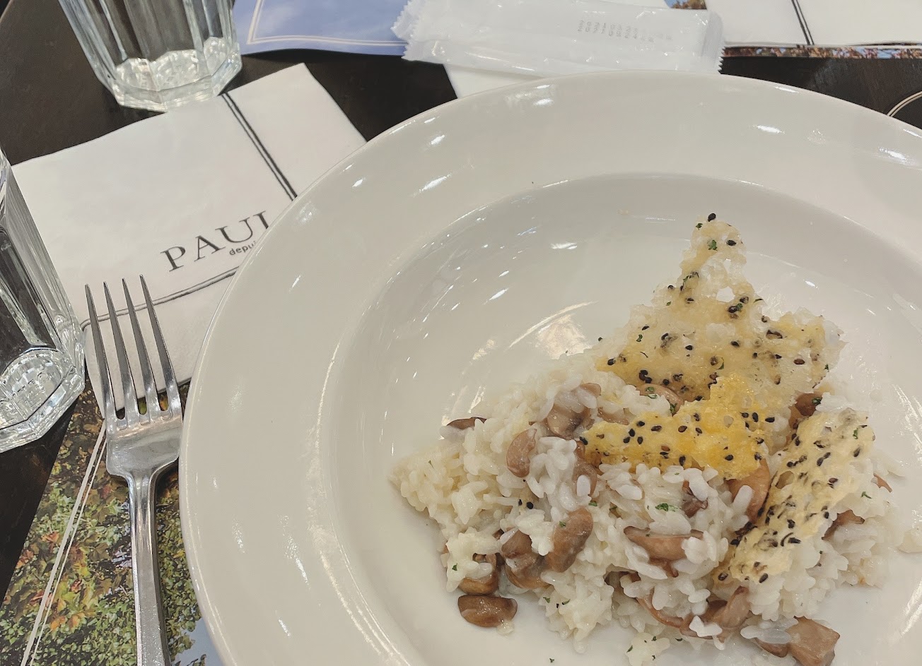 第一次進來吃,是衝著壽星優惠吃甜點來的。點了白醬野菇燉飯主餐,和濃湯、鮮奶茶,並使用壽星優惠(前後三天),免費吃甜點活動:消費滿$500可以享有免費的$245內甜點任選,我選了草莓千層。 我覺得主餐餐點非常普通,濃湯及飲料也是非常的普通,美味程度可能連及格邊緣都不到,草莓千層甜點的部分還算勉強可以過關(但是已包括同情分數:因為免費),吃的時候也很不好切,因為千層的部分不夠酥脆,切起來的動作,也會讓裡面的卡士達醬全部擠出來,也無法優雅的讓千層搭配卡士達醬優雅地吃。若要再次拜訪可能需要有什麼厲害的優惠誘因,也許可以試試看其他甜點。 有另外外帶檸檬老奶奶蛋糕,此次的三顆星由它返回一成,不然可能只有兩顆星,以上針對餐點口味不美味,服務的人員都很好。檸檬老奶奶蛋糕單片$100,這個應該是Paul裡今天唯一及格的部分。