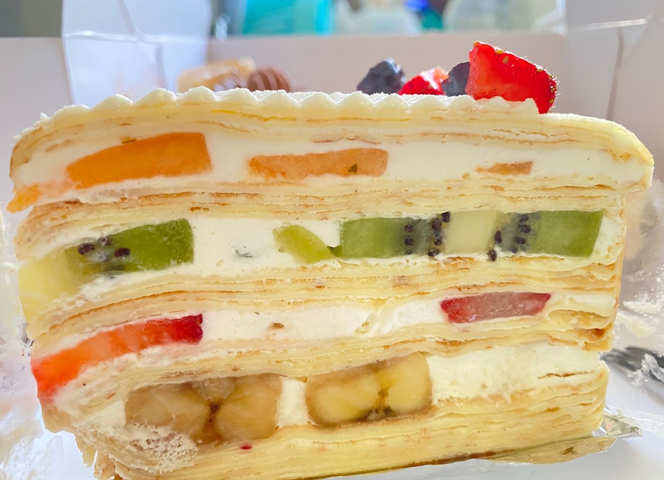 兩點來太慢沒有買到抹茶好可惜~但很開心的買到水果跟桂花千層!老闆娘推薦可以上ig 先看口味先預訂喔!推薦給大家