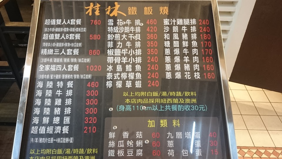 我是外帶的,但不得不說這是有史以來我吃過最難吃的鐵板燒! 一般鐵板燒都有兩道青菜,外帶卻只有給我一道,另給一顆蛋,問我要半熟全熟,我說半熟結果給我全熟;沙朗我說7分,結果吃起來感覺像5分或更少;飯是冷的不說,還一堆硬的結成像鍋巴的樣子! 湯真的是清湯,喝起來像竹筍湯但完全沒有竹筍。 服務員態度也是一樣沒有多好! 這樣一客要200多快300,我還不如去吃大板來得開心!