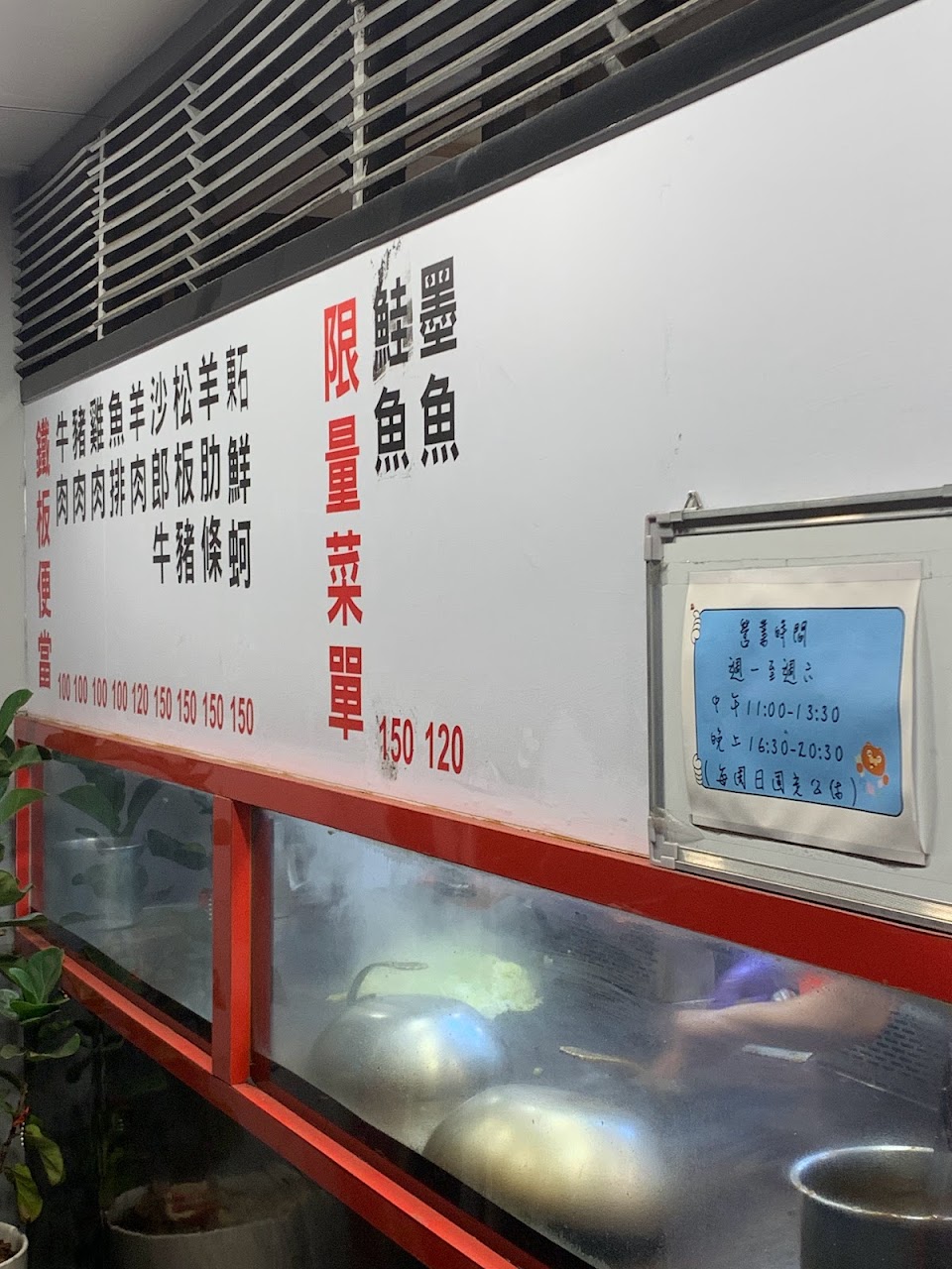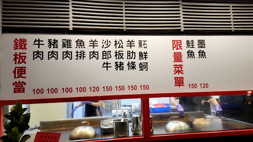 1.價位只有一百!附蒸蛋讓人有財富自由感。 2.吃很飽!口味跟一般鐵板燒差不多,但飯量是一般的兩倍。 3.店員親切,有透明櫥窗看做菜過程,吃得安心。 4.用餐時間可打電話預定。因為在光復路上停車不易,所以機車比較方便取餐,僅限外帶。 服務 外帶 餐點類型 晚餐 平均每人消費金額 $1-200 餐點:4 服務:5 停車位 停車不方便 停車場 在光復路上,所以機車比較方便停車取餐
