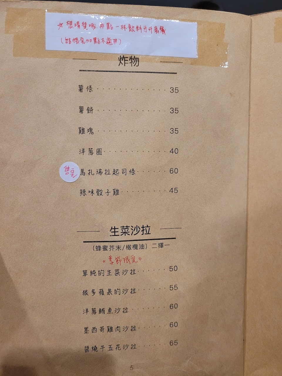點主食餐點可以50升級成套餐($35炸物和$30飲料,超過補差價即可)-但結完帳就不能升級囉!