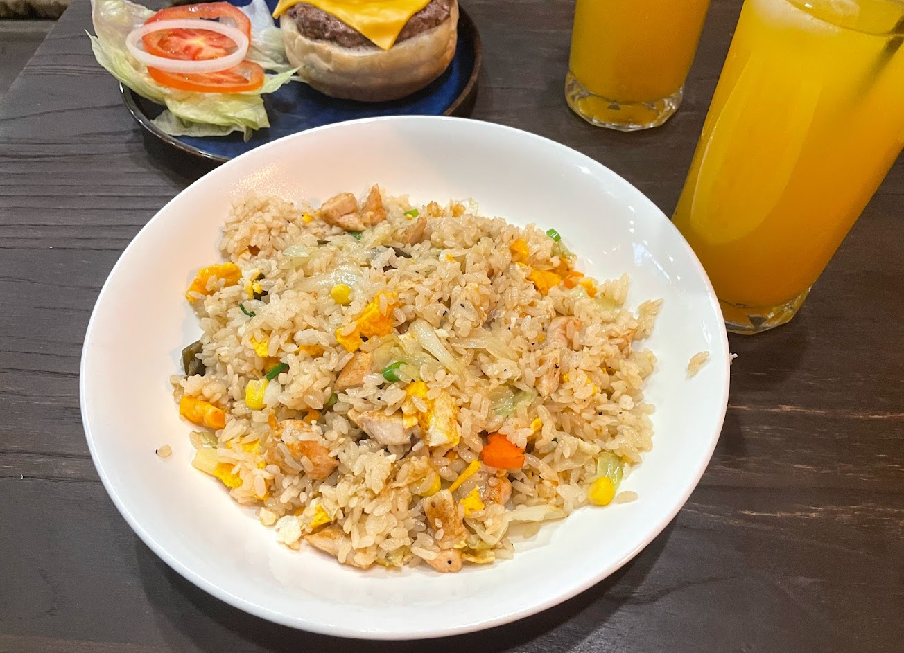漢堡和炒飯味道都不錯,價格也合理,只是店內座位稍少,客滿的時候等餐會比較久