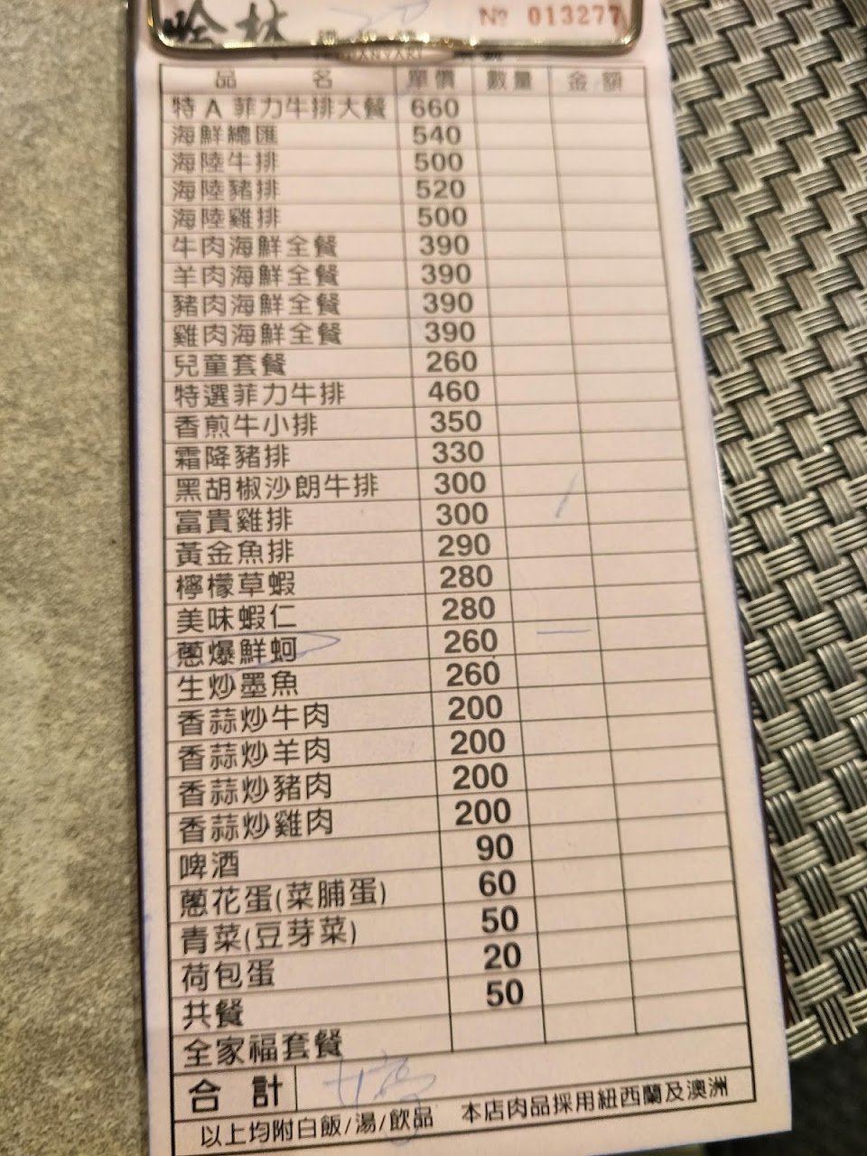 今天點了一客雙人豪華特餐,中卷新鮮彈牙好吃、菲力牛肉超值、白鯧魚也好吃,以老饕的觀點,食材算是很棒。