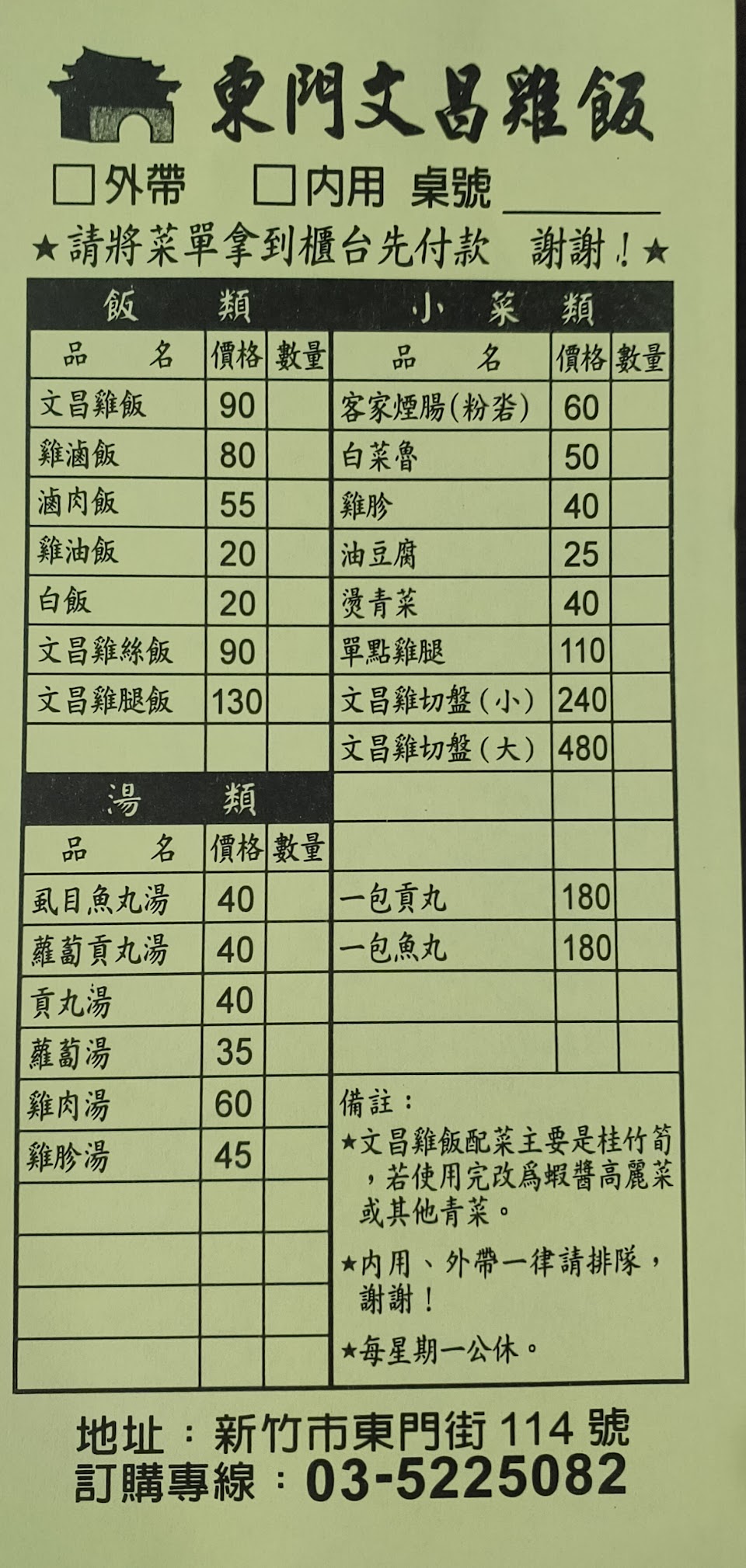 現在只有外帶~菜單也簡化了。文昌雞皮薄Q脆肉鮮嫩令人難忘的滋味,現場大概都需要排隊但備餐很快,可以放心購買,個人最愛小切盤(文昌雞腿)、文昌雞飯、文昌雞腿飯、筍絲~