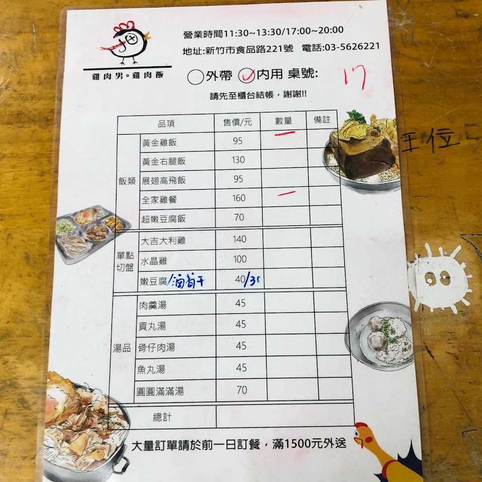 位於食品路上的雞肉飯,主打玉米雞跟土雞肉的飯類料理,裝潢用校園風格,連裝飯的碗都是便當盒,蠻可愛的。牆上都可以看到料理的手繪畫,如果看不懂菜單內容就可以參考用。