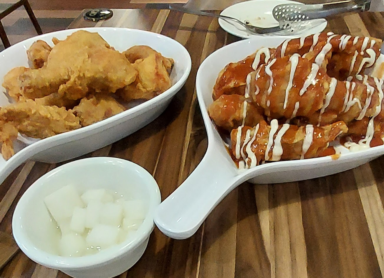 只是只有調味炸雞跟種類不多的小菜 吃到後來炸雞難免會有些微膩口 有在台北吃過另一家類似的BBQ 他們除了炸雞以外的菜就比較豐富 不容易膩 希望可以多些味道淡的韓式小菜搭配 或是增加除了炸雞以外的菜品 會更好吃