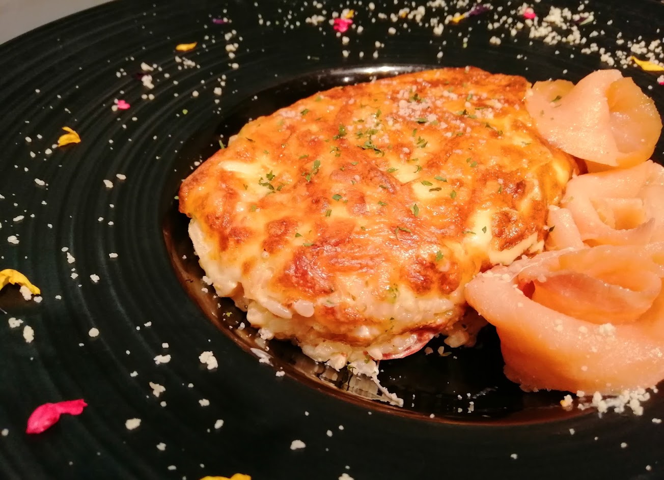 焗烤煙燻鮭魚佐明太子奶油白醬