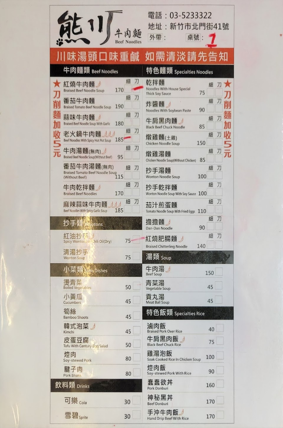 2024最新在地推薦餐廳的菜單_熊川牛肉麵的菜單、圖片
