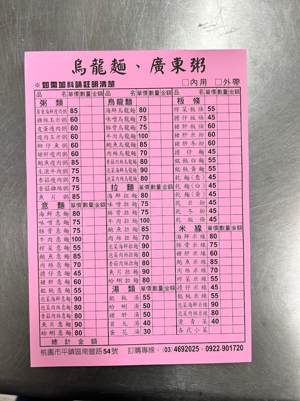 2024最新在地推薦餐廳的菜單_烏龍麵、廣東粥的菜單、圖片