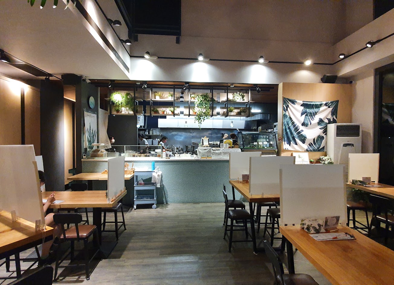 時尚簡約的餐廳,提供麵食、湯品,以及鮮蝦沙拉和肉骨茶。