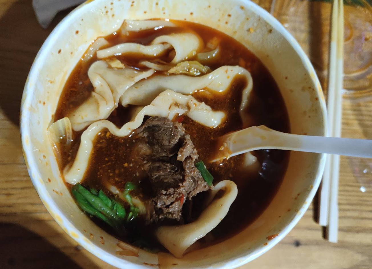 喜歡重口味的可以選紅燒,搭配的是不規則條狀腱子心肉,有點辣但可接受,最喜歡搭配手工麵,香Q有咬勁
