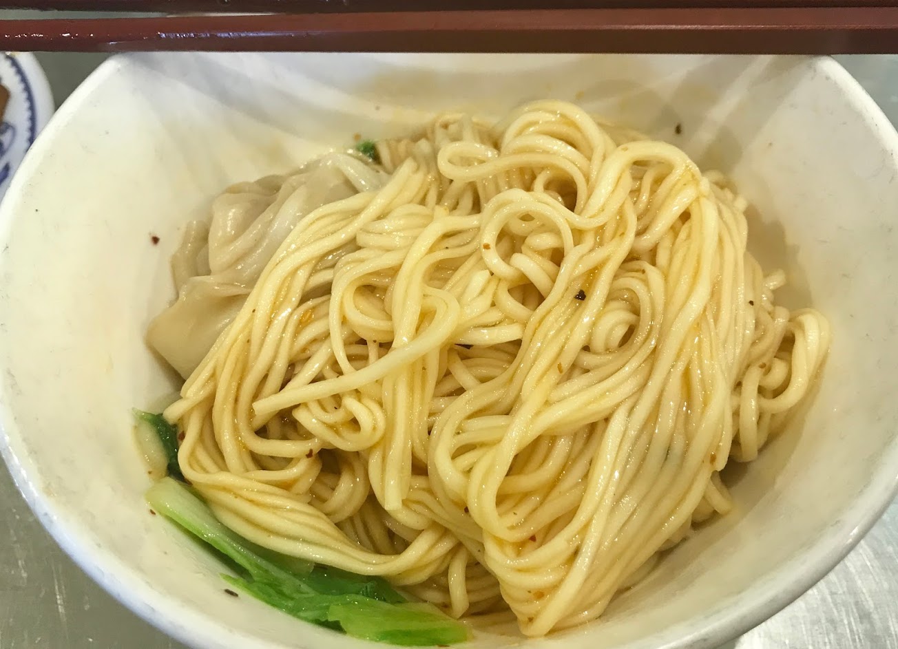 ? 聽聞這家乾麵非常好吃,很多人專程跑來新竹吃這一味,看似平凡的乾麵,拌上香麻的辣醬,麵條軟嫩吸附醬汁,搭配個頭不小的豬肉餛飩,吃一口就令人驚豔!