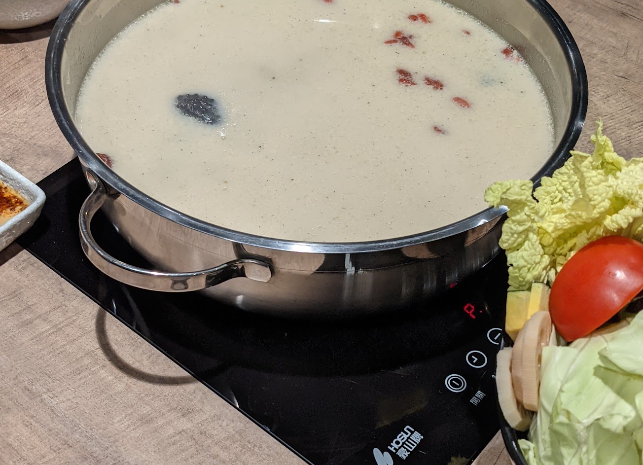 第一次吃,超級驚艷!胡椒湯頭十分濃郁,但不油膩。臘味煲仔飯也很不錯,微鍋巴的口感,不油膩,很喜歡。一份的料量滿足,而且都很乾淨新鮮。大推芋香蛋餃,手工蛋餃,吃的到芋頭顆粒,很實在!吃到最後再加入黃金菇,湯頭又變另外一種風味,帶有奶油香。9個人吃超飽,一人才不到500元,CP值超高。最後湯頭還能打包帶走,完全不浪費。用餐環境也非常舒適,大推!