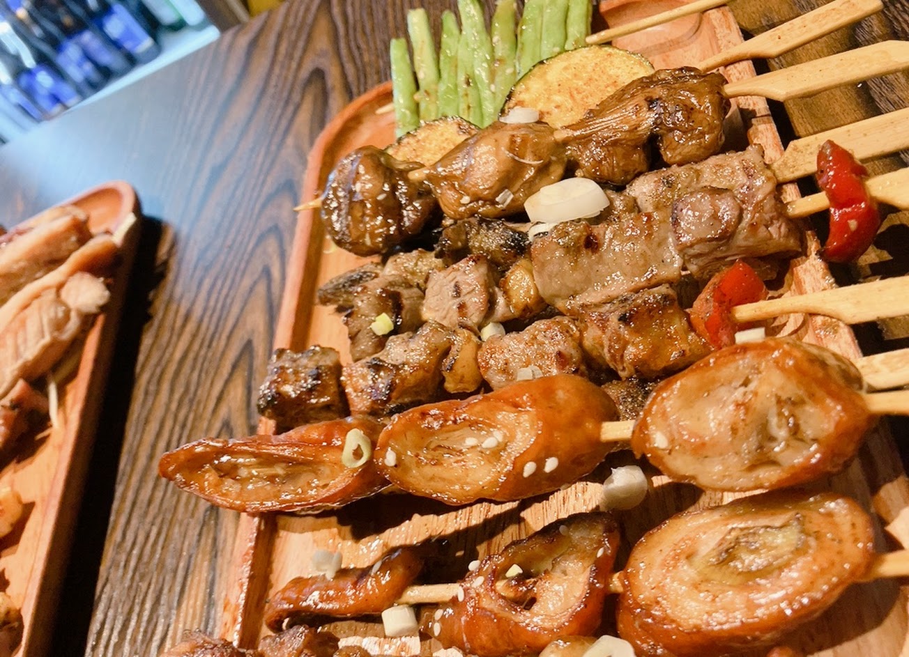 食材種類多樣化、新鮮,味道也非常不錯,蔬菜烤得恰到好處,杏鮑菇、櫛瓜保留著蔬菜的水份又非常入味,雞心還會爆汁、雞皮酥脆、雞脖子味道好到想配杯啤酒(喝酒不開車,開車不喝酒)。